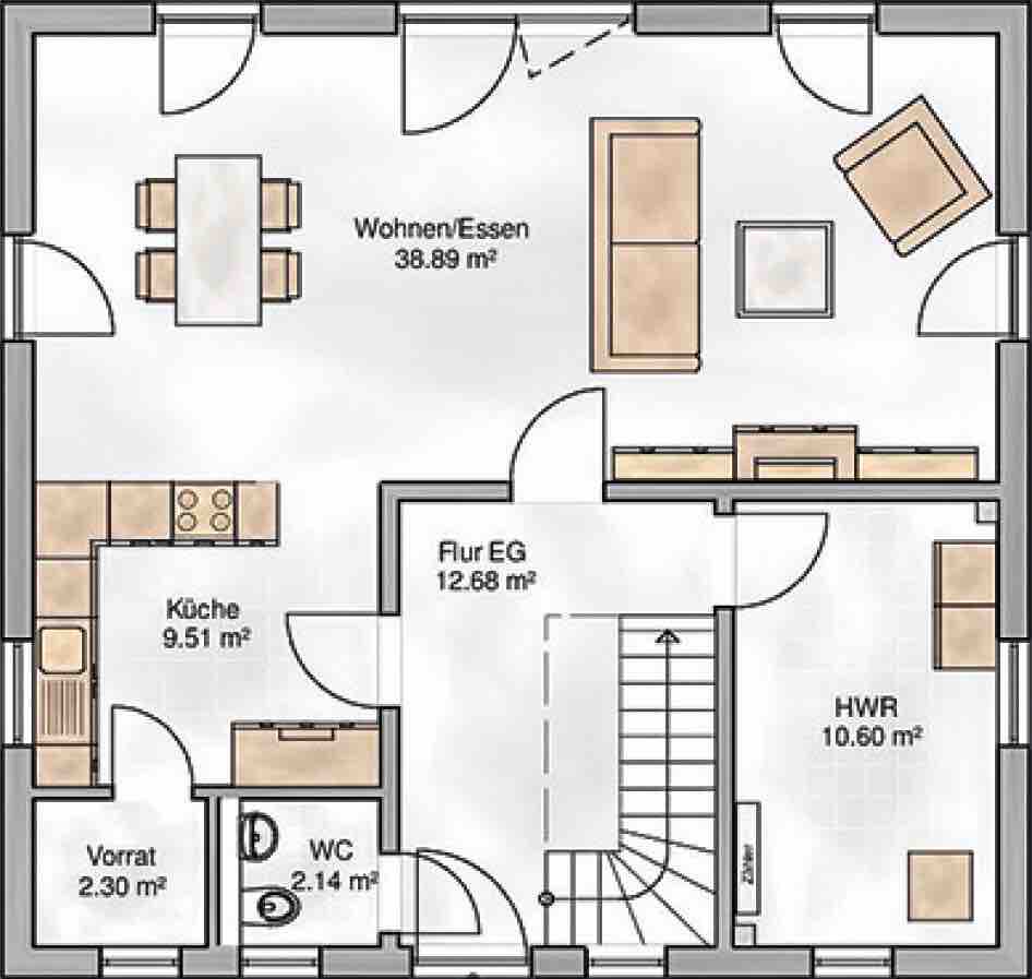 Hausausführung schlüsselfertig inkl. - Architektenleistung - Erdarbeiten - Bodenplatte mit Dämmung - Rohbau Stein auf Stein - Dachstuhl und Dacheindeckung - Trockenbau - Innen- und Außenputz - Exklusive Aluminium Haustür - Kunststofffenster mit 3-fach Verglasung - Alu Rollläden - Holz Innentreppe - Bad und WC komplett fertig mit Fliesen - Wärmepumpe - Fußbodenheizung - Elektroinstallation inkl. 4 Netzwerkdosen