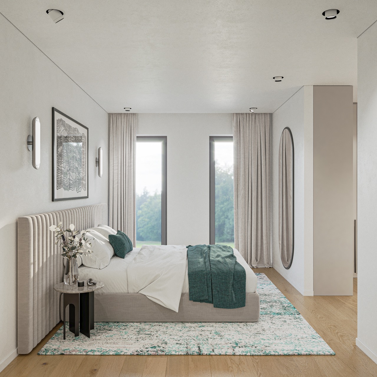 Zeitlose Eleganz und viel Transparenz bestimmen die Optik. Große Fensterfl ächen im EG und DG des zweigeschossigen Hauses schenken lichtes Wohnambiente.