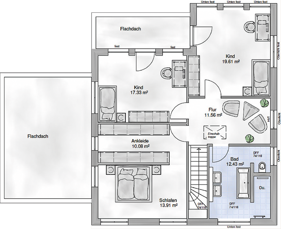 Die weitläufige Villa besitzt zwei Vollgeschosse und bietet damit reichlich Platz für eigene Ideen. Siena ist ein Stadthaus für anspruchsvolle Menschen, die klassisches Design mögen.